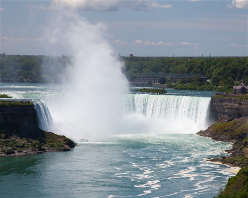 Niagara falls is one of the largest geological formations in North America and is regarded as one of the seven natural wonders of the world. The falls are composed of numerous tectonic plates which have caused the confluence of numerous pools of water within the basin of the falls. This natural phenomenon which resulted in the formation of this striking visual landmark in North America has resulted in its designation as a National Park. Niagara falls is a collection of three falls within an area of approximately seven miles in width, spanning the eastern border of Niagara Gorge between Canada and the United States. The American Falls and Bridal Veil Falls lie within the United States while the Horseshoe Falls lies in Canada.